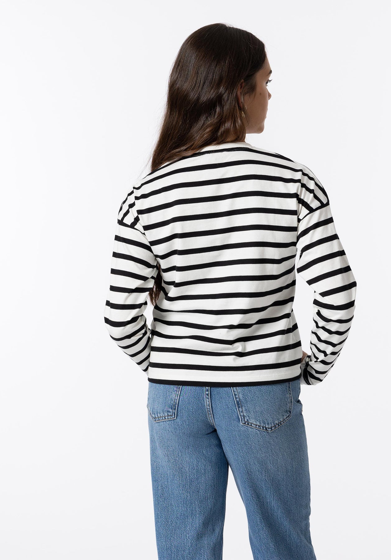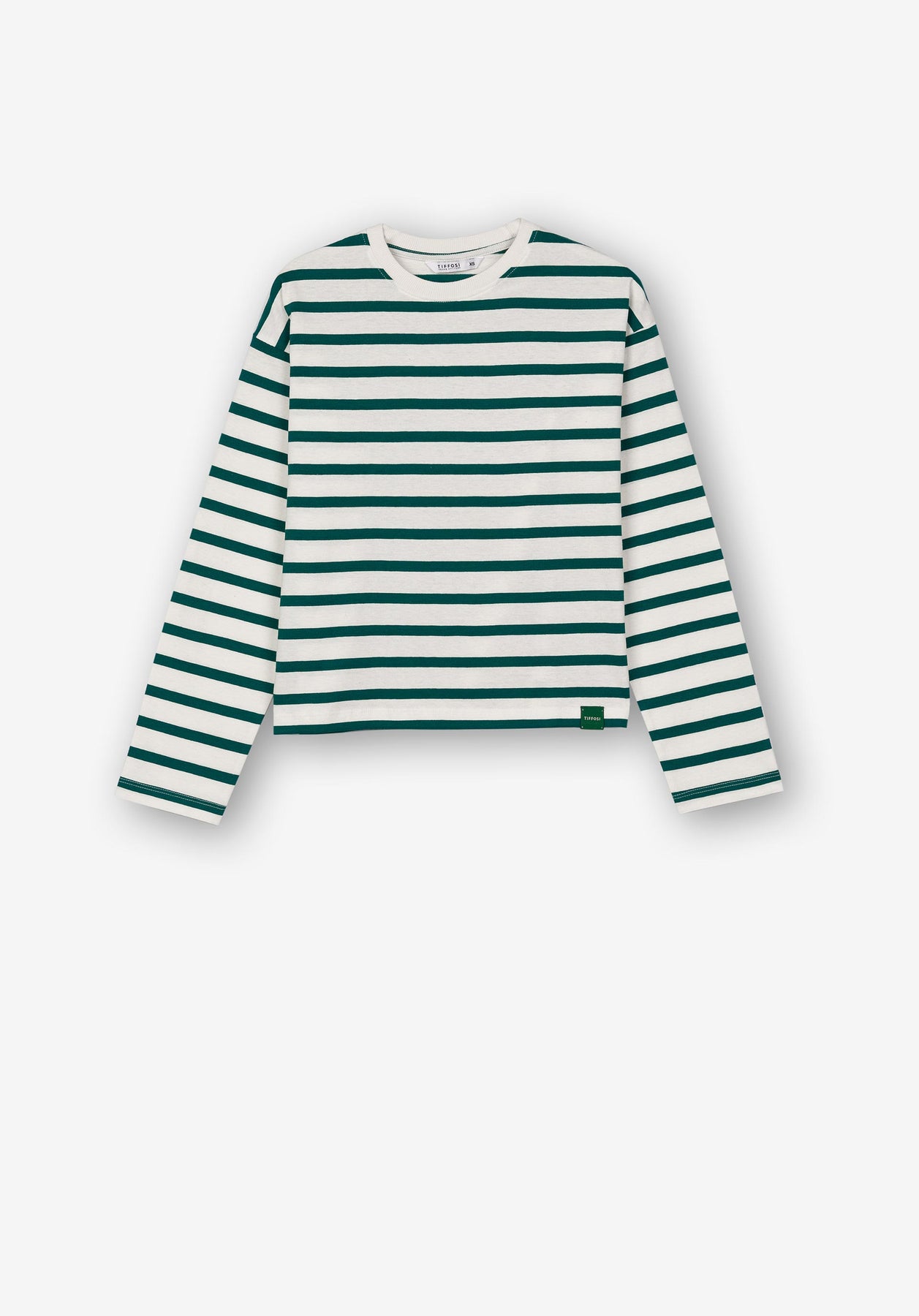Camiseta con cuello redondo y manga larga.