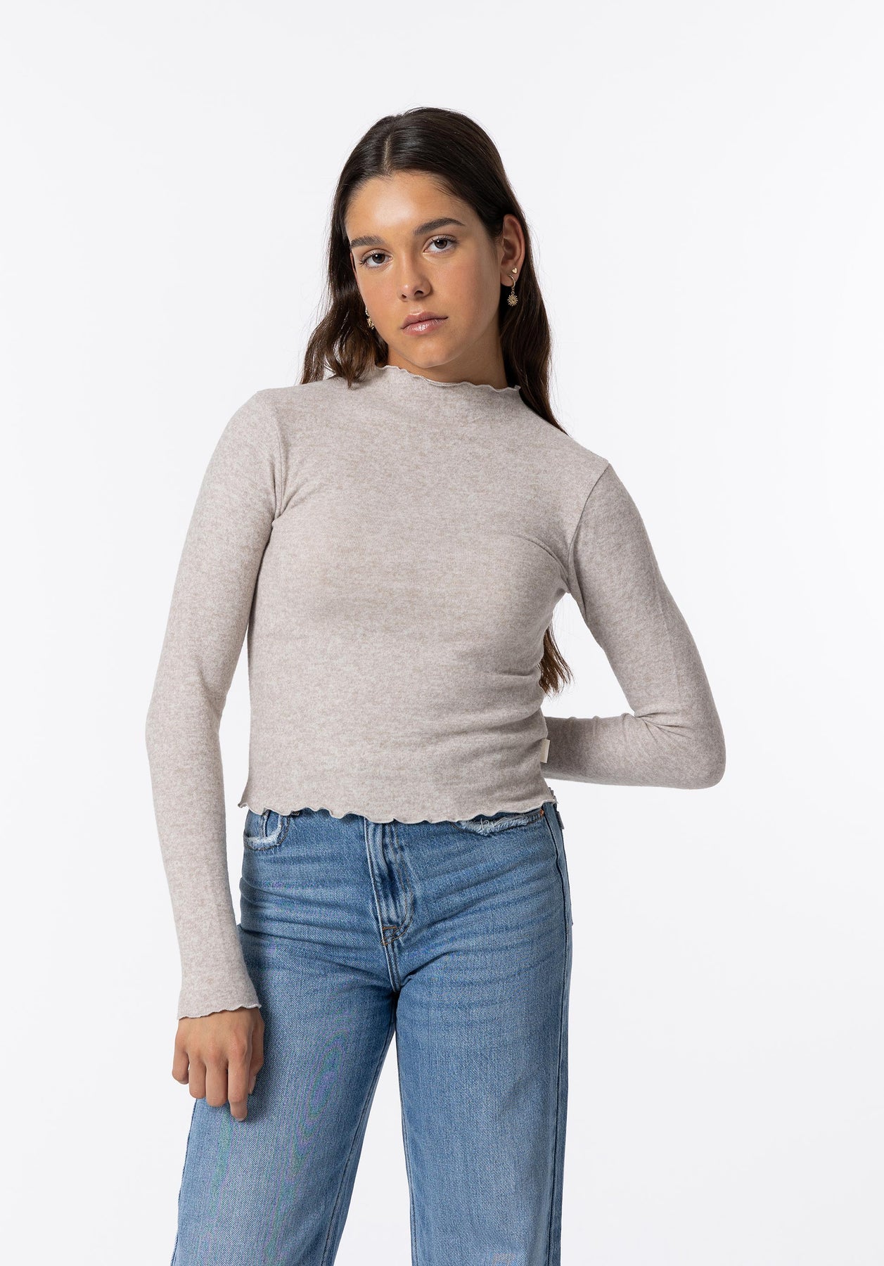 Camiseta de manga larga con detalle acabados con ondas.