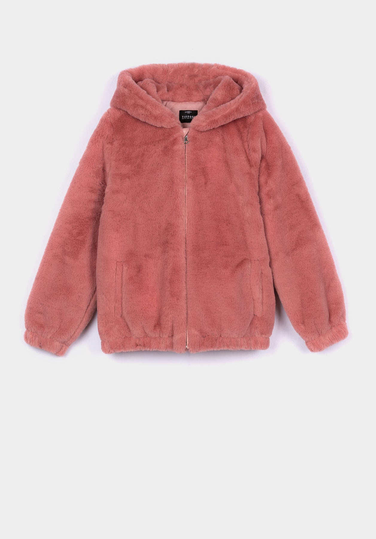 Chaqueta de pelo con manga larga y capucha. Bolsillos laterales. Cierre frontal con cremallera. Elástico en los puños y bajos.