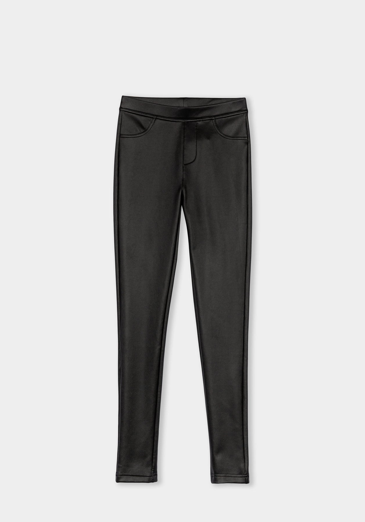 Legging de tiro medio con cinturilla elástica. Bolsillos falsos delanteros.